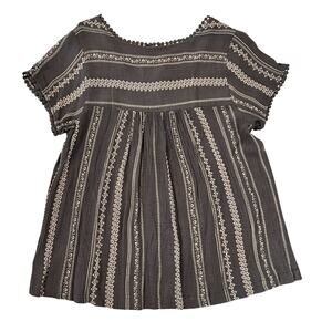 Savanna Jane Gray Embroidered Floral Boho Short Sleeve Top/Blouse - SIZE SMALL