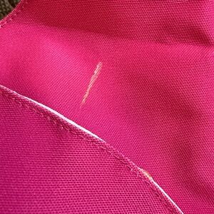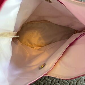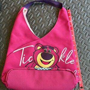 Cute Disney bag featuring Lotso from Toy Story. Bright pink color with fun design. Perfect for kids. Small blemish (approximately 1 inch) on back side.