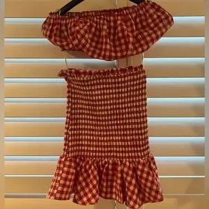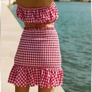 Mable by Anthropologie Red Gingham Plaid Skirt & Top Set,