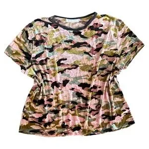 This trendy top features a unique camouflage print in shades of green, perfect for making a statement. The lightweight fabric makes it ideal for layering, while the relaxed fit ensures all-day comfort. Whether you're running errands or hanging out with friends, this top is sure to turn heads and keep you feeling fashionable.