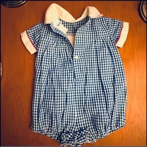 Vintage Alexis Adorable blue gingham baby romper featuring apple embroidery. Perfect for a cute and comfortable outfit Size 3-6 Months