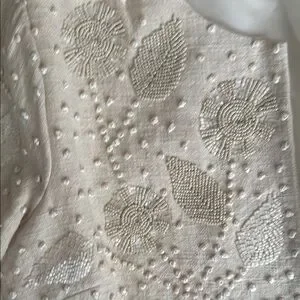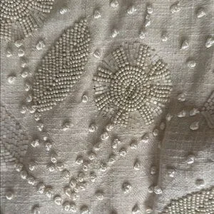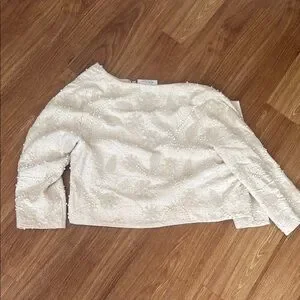 This sophisticated cream blazer showcases a beautiful floral lace pattern and 3/4 length sleeves, offering a chic and elegant look for formal events or as a stylish cover-up.