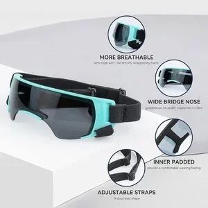 • Dog Goggles: Made of PC material features hard lenses for safety and durability. An adjustable head and chin strap for easy wear and removal and soft sponge padding enhances comfort—ideal for dogs with eye conditions or sunlight sensitivity.