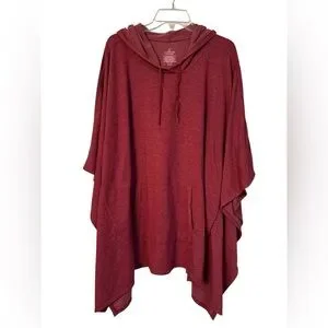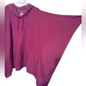 Pullover style hooded cape from Cuddl Duds. Marled reddish color that looks purple in a couple of my pics. It is definitely more on the red spectrum. Cozy and warm layering piece that would be great to have in hand for cool days or evenings. Gently preowned condition, smoke free home.