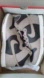 Black and Tan Nike High Dunks in a box with vibrant red with white branding. Classic and bold design.