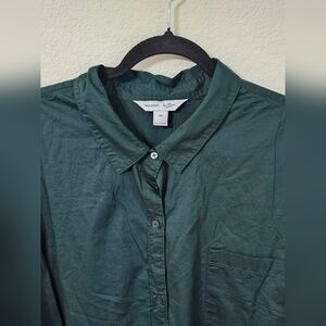Old Navy Shirt Womens 3X Button Up Long Sleeve The Boyfriend Shirt Top Green