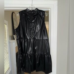Elevate your night out with the SHEIN Black Tiered Ruffled Sundress. This sleeveless dress features a chic collar neckline and a playful tiered design that adds a touch of elegance to its flowy silhouette. Crafted in a glossy black finish, it captures the light beautifully, making it a standout piece for any cocktail occasion.