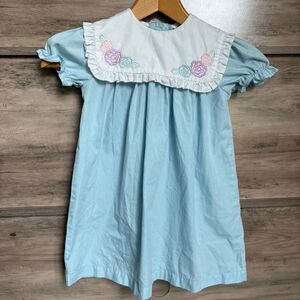 Southern Siblings Light Blue Dress Floral Embroidery Ruffle Girls 3T see INFO