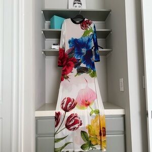 Alice + Olivia Maxi Dress Sold Out Online. Worn twice in Amazing Preloved condition. I purchased from Neiman Marcus Winter 2024 . Size Medium. Partially lined 90% polyester 10% elastane. Dry Clean Only. Size 4. total length 60” Waist 26”hips 36”