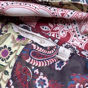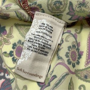 Soft Surroundings Blouse Top Langdon Tie Neck Patchwork Paisley Sheer Boho Bohemian Peasant Office Career
