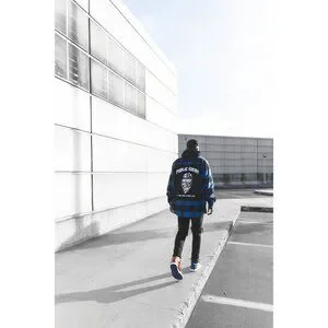 This blue and black plaid shirt from Wicked features a distinctive Public Enemy graphic on the back. Made from 100% cotton, it offers comfort and style.