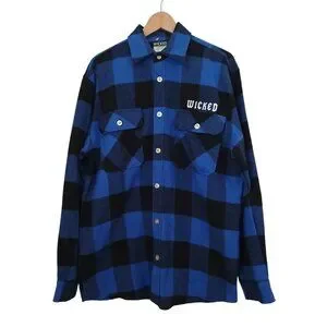 WICKED Clothing PUBLIC ENEMY Blue & Black Plaid Long Sleeve Shirt Men's Size M