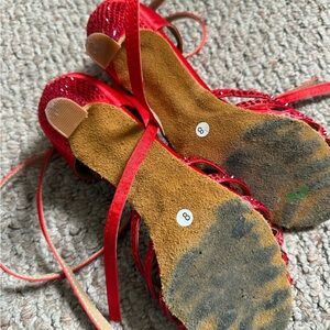 Dance shoes- soft bottom, ballroom or other. Crystal accents, ties around ankles.