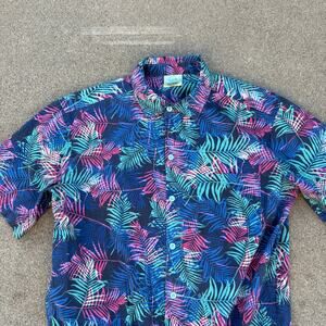 Zesties Romper Mens L Tropical Leaf Print Short Sleeve Blue Pink Green Summer