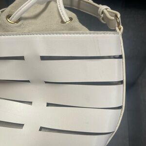 Chic and versatile white bucket bag with a stylish drawstring closure. Perfect for any occasion.