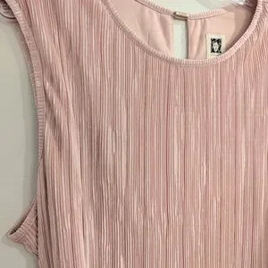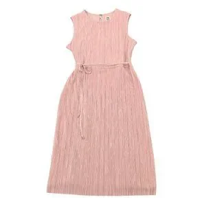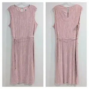 ANNE KLEIN Crinkled Satin Blush Dress 16 Sleeveless Waist Tie Midi Length --- Soft, muted pink --- Micro Pleats