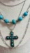 This exquisite Shyanne necklace features a captivating blend of silver chains and vibrant blue beads, creating a striking bohemian-inspired piece. The layered design adds depth and dimension, while the decorative cross pendant enhances its unique charm. Perfect for adding a touch of elegance to any ensemble.
