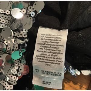 This NWT DKNY Silver Sequence Crop Top is a stylish and chic addition to any woman's wardrobe. The top features a flattering crop style, making it perfect for pairing with high-waisted bottoms. The silver sequins add a touch of glamour, making it perfect for special occasions or nights out. This top is size small, ideal for a regular fit for women looking to make a statement with their outfit.