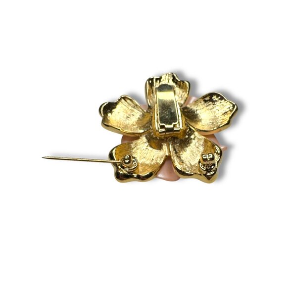 Nolan Miller Peach Gardenia Layered Enamel Lucite Flower Brooch Necklace Enhance