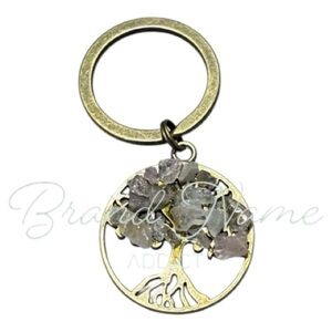 Elegant bronze gold handmade keychain/bag tag featuring a Tree of Life design with Rose Quartz crystal accents. Perfect for adding a touch of style to your keys.