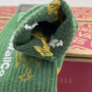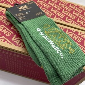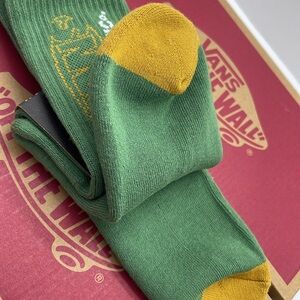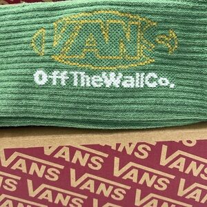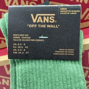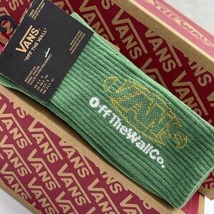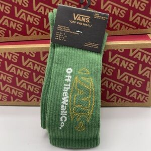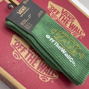 Stylish green crew socks with iconic Vans logo. Comfortable and durable for daily wear.