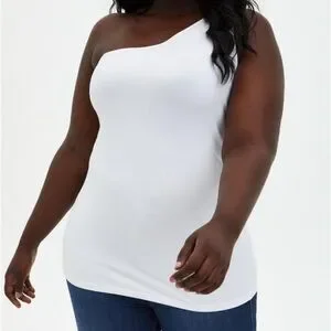 A soft and stretchy tank made from Torrid foxy signature fabric is cut to hug your figure, while a one-shoulder silhouette adds an updated touch.