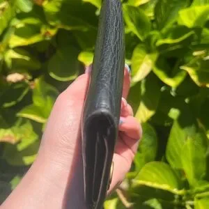 Wallet has multiple card slots and two pockets to hold money as well as a zippered compartment.