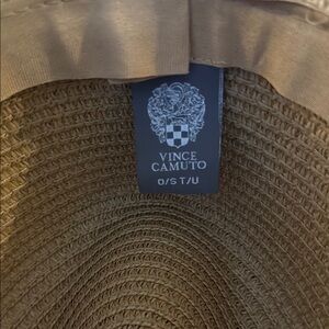 Embrace the sun with the Vince Camuto Tan and Black Fedora Hat, a stylish accessory perfect for warm weather. Crafted with a wide brim for optimal sun protection, this hat features a chic black ribbon band that adds a touch of elegance. The subtle textural pattern of the weave enhances its sophisticated look, making it a must-have for any sunny day adventure.