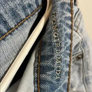 These blue jean shorts from American Eagle Outfitters feature a relaxed, cut-off style with distressed and frayed edges for a laid-back look. The denim showcases a range of blue washes, adding a touch of vintage charm to your casual wardrobe.