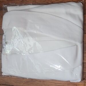 Elegant white blazer and pants set. Perfect for formal occasions. Tailored fit with single-button closure. Work it all week in Kasper's impeccably flattering one-button blazer, styled with a classic notched collar and modern ruched 3/4-sleeves.