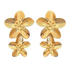 Enhance your style with these radiant gold floral drop earrings. Perfect for adding a touch of sophistication to any outfit.