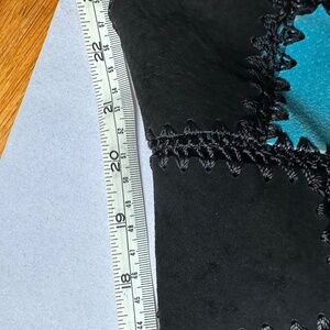 Super cute blue, pink, purple, and black suede patchwork jacket. Boxy fit. Black knit between suede patches.