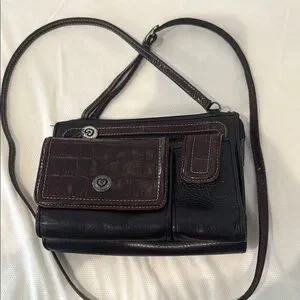 Brighton Vintage Black and Brown Crossbody Bag with Adjustable Straps