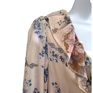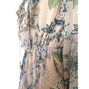 Super Natural by Secret Mission Rose Dress NWOT Boho Floral Mini Dress S Beige Blue Purple Sheer Layered