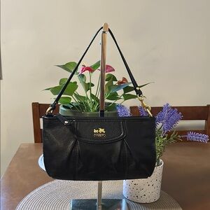 SOLD SOLD Coach Black and Gold Leather Shoulder Bag with Structured Design