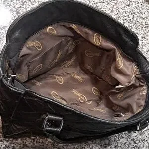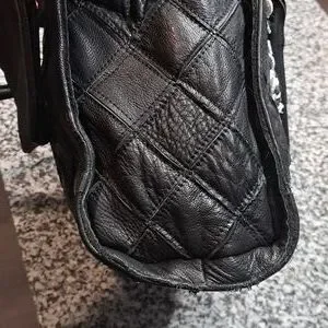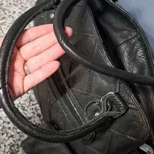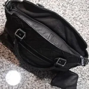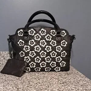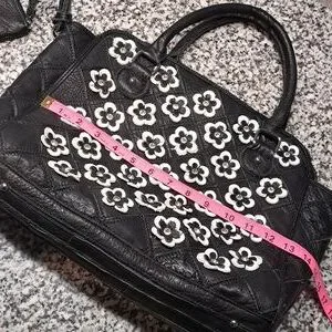 Ameri leather Black & White leather Handbag With Flowers And Diamonds