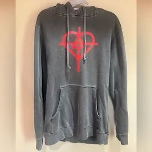 Thirty Seconds to Mars Hoodie with song lyrics on the back; distressed gray color. Size small!