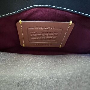 This elegant Coach shoulder bag showcases a sophisticated blue hue, complemented by the brand's iconic signature design. The structured silhouette and premium craftsmanship make it a timeless accessory for any occasion. Its gold-toned hardware adds a touch of luxury to the overall look.