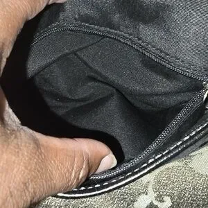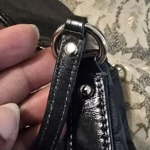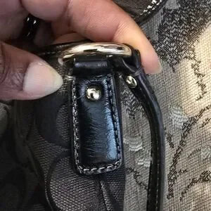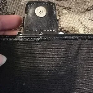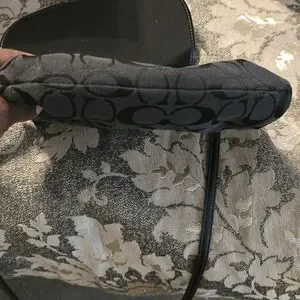 Coach Purse Black Signature Canvas Crossbody Bag Leather Trim Silver Tone Accent