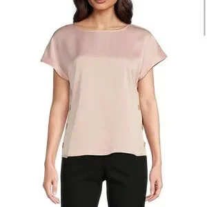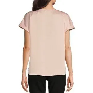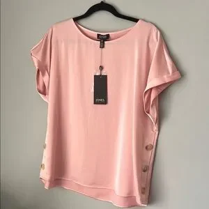 JONES NEW YORK Hammered Satin Crew Neck Short Sleeve Side Button Blouse