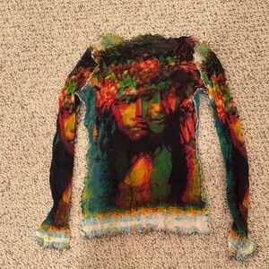 Jean Paul Gaultier Vintage Colorful Women's Top with Artistic Face Print