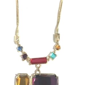 -Vintage Multicolored Rhinestone Pendant Double Snake Chain 18-21" Necklace.
