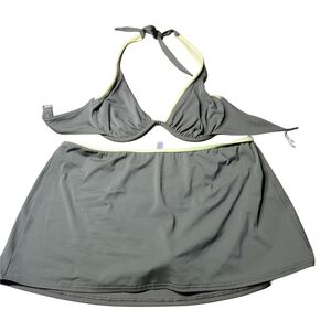 Victoria's Secret Olive Green Bikini Top with Yellow Trim And Skort Bottom
