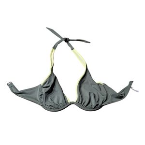 Elegant olive green bikini top by Victoria's Secret with bright yellow trim.