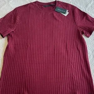 Stylish Perry Ellis ribbed knit top in cabernet,dark grey, white, and tide blue. Perfect for any occasion.