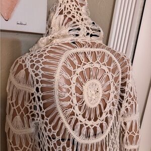 Texture and the perfect cut! Features a midi cut, soft fabric, and an optional tie. This hoodie comes detailed with a detailed sheer crochet design. The perfect festival look for your next visit to Coachella, Burning man or to be the life of the party in Ibiza.