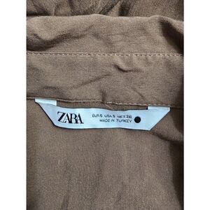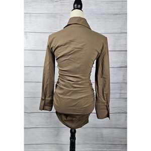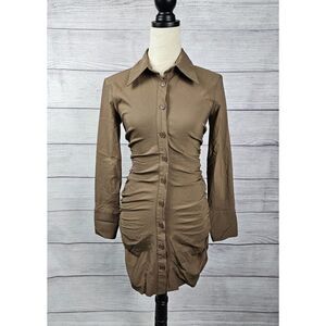 Zara Button Up Bodycon Shirt Dress with Ruching Tan Size Medium