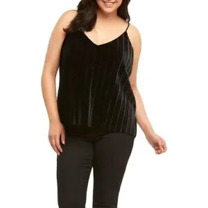 Designed in a flowy silhouette with allover pleats, this plus-size top features a flattering V-neckline in the front and back, complete with delicate spaghetti straps.