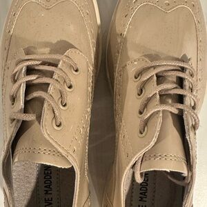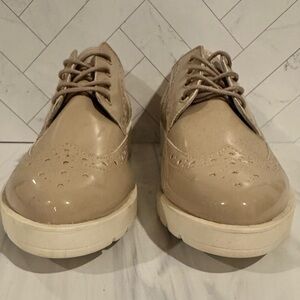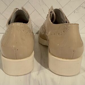 Elegant Patent Leather Beige Women's Oxford Shoes