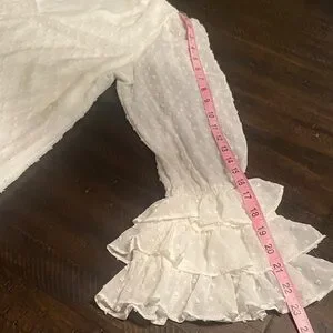 White Swiss-Dot Blouse with Ruffled Bell Sleeve, size S, 1.State brand